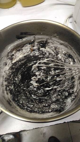Step9 : 取一些蛋白霜至可可糊攪拌均勻 (我都用打蛋器用切半的手法攪拌)