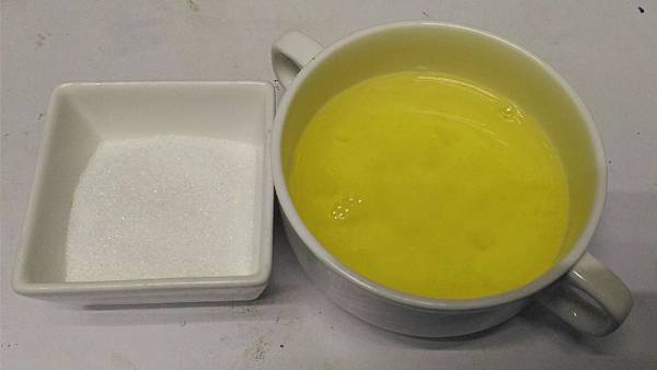 Step5 : 將蛋白用攪拌機(快速) 打至起泡,停機,加入砂糖