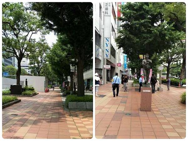 在姬路的街道二側都有綠蔭的樹,人行道也很寬敞