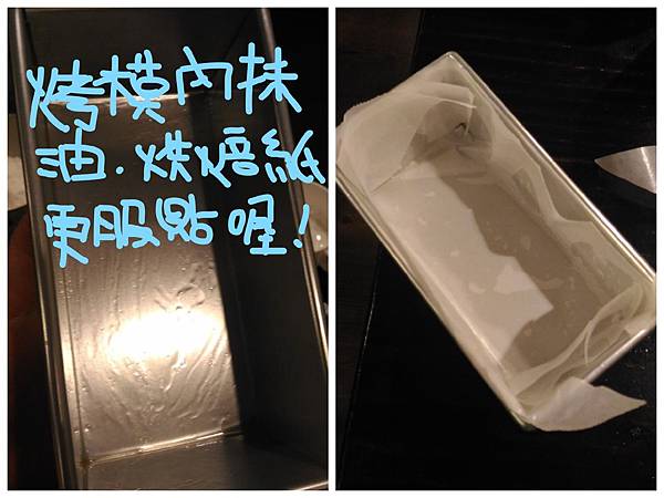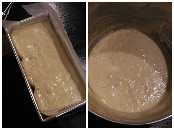 Step6 : 完全混合後,倒入烤模 (用竹籤來回於畫幾次,將泡泡劃破)
