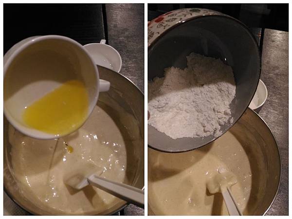 Step5 : 分2-3次間隔加入奶油液與麵粉,攪拌 (請勿用力攪拌)